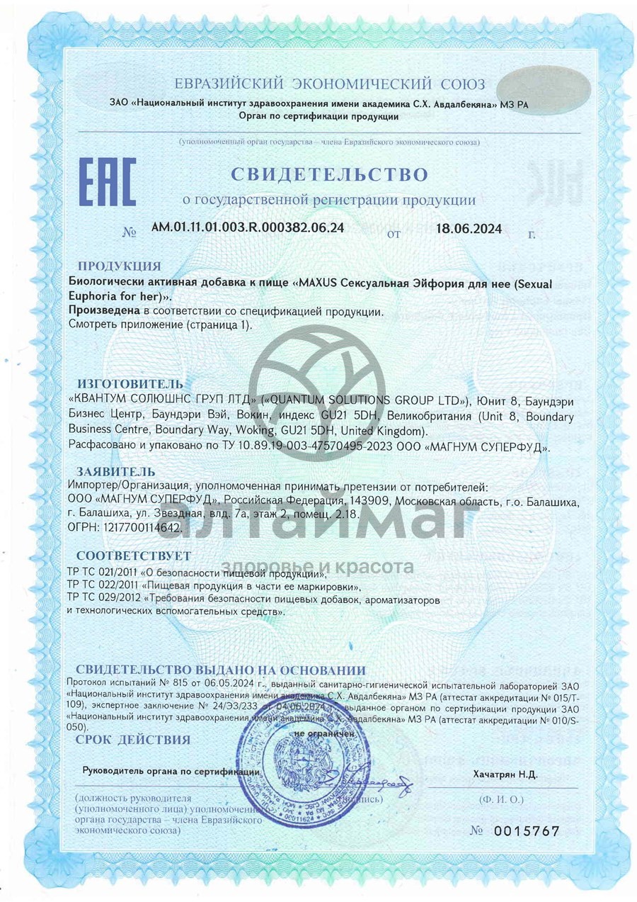 - Купите Maxus Sexual Euphoria для нее 60 капсул в Краснодаре по доступной цене 949 ₽ с доставкой на дом или заберите Ваш заказ в Краснодаре из ближайшего пункта выдачи, сделав заказ на AltaiMag.ru.