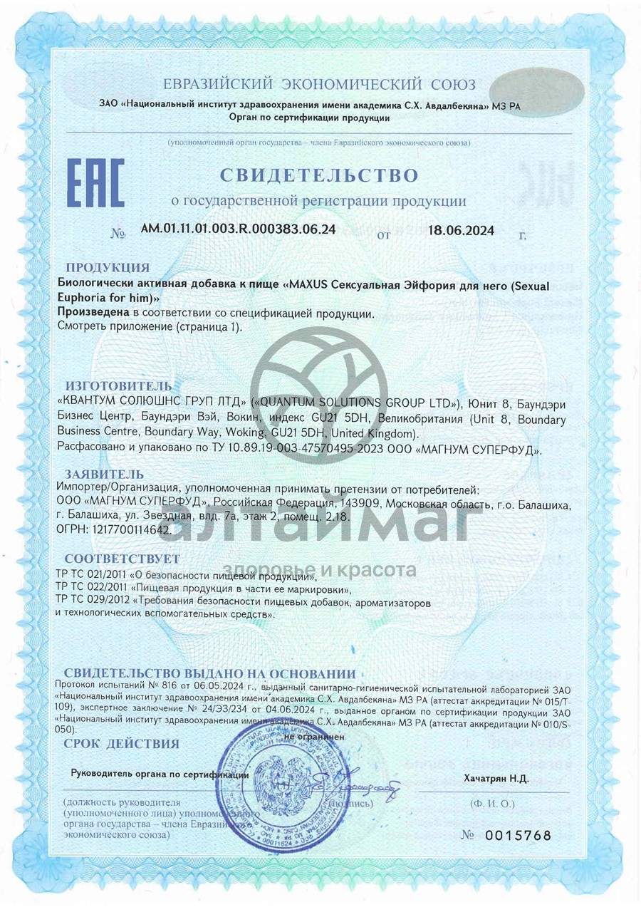 - Купите Maxus Sexual Euphoria для него 60 капсул в Краснодаре по доступной цене 949 ₽ с доставкой на дом или заберите Ваш заказ в Краснодаре из ближайшего пункта выдачи, сделав заказ на AltaiMag.ru.