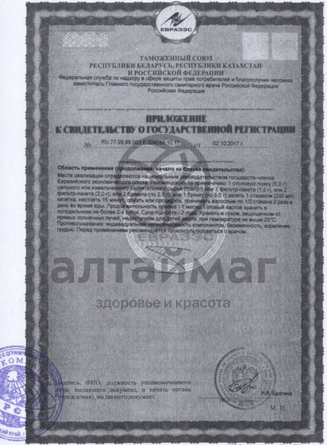 Рекомендуется при простудных заболеваниях, заболеваниях верхних дыхательных путей, гриппе, авитаминозе; при перемежающейся лихорадке, воспалении мочевого пузыря, атонии кишечника, неврозах, геморрое, подагре; как противовоспалительное, антисептическое, протистоцидное, мочегонное, обезболивающее, мягчительное, жаропонижающее и успокаивающее нервную систему средство. Наружно при повреждении сухожильных связок; при трихомонадном кольпите, гнойных ранах, язвах, дерматитах, сильном зуде; при стафилококковых и грибковых заболеваниях кожи, ревматизме, заболеваниях суставов, ожогах, геморрое.Масса нетто:
